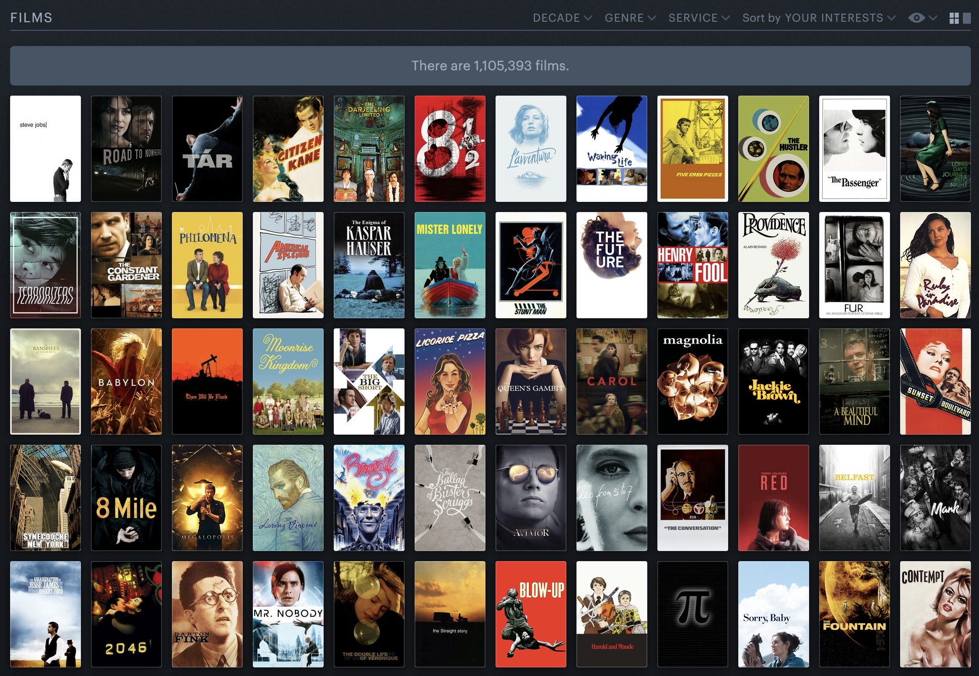 Now here is the same list after I liked about 50 films and sorted it by Your Interests: