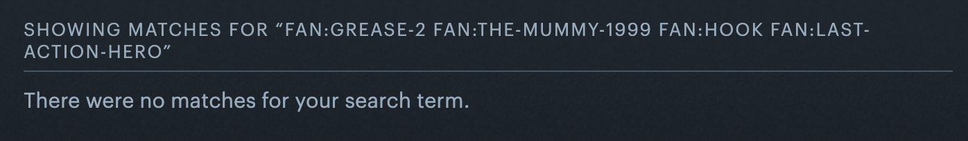 In the search bar, type fan:grease-2 fan:the-mummy-1999 fan:hook fan:last-action-hero