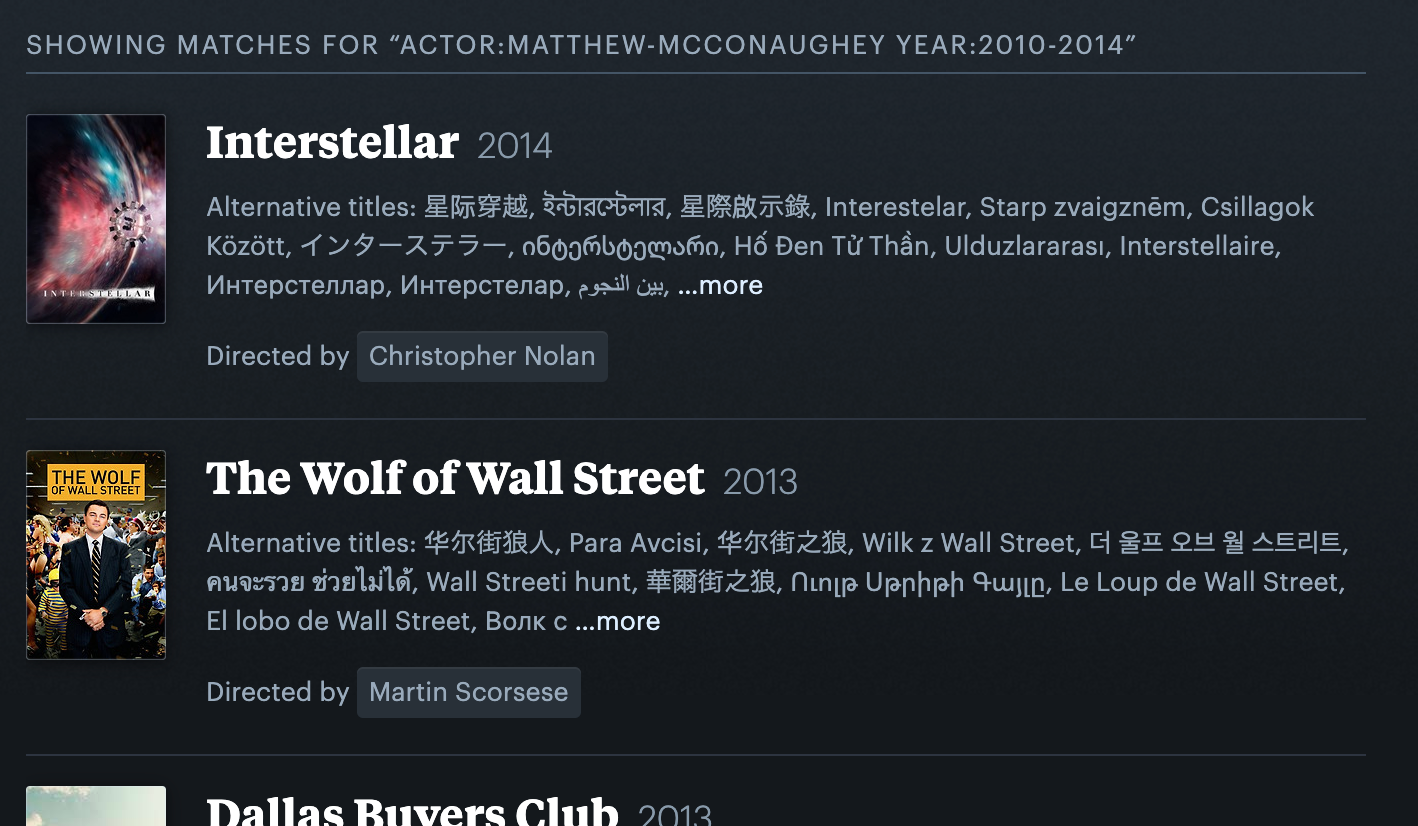 In the search bar, type actor:matthew-mcconaughey year:2010-2014