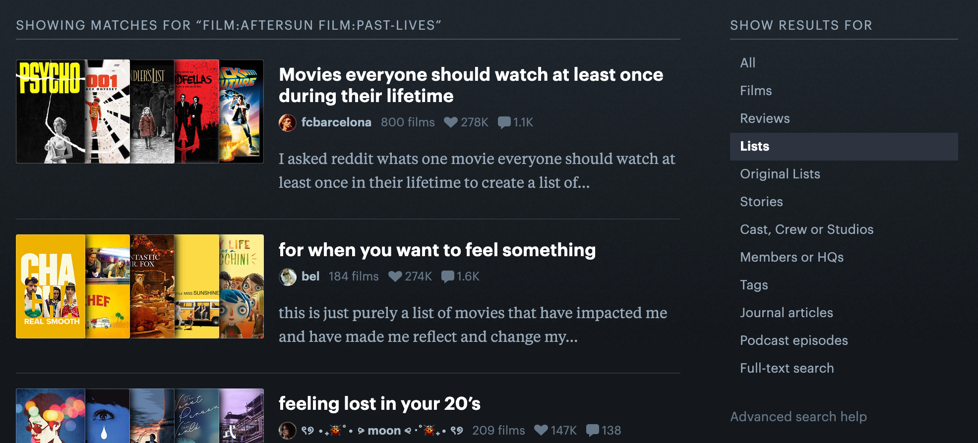 Now you can browse lists to see if any members made a curated collection of films that have that specific vibe you’re after.