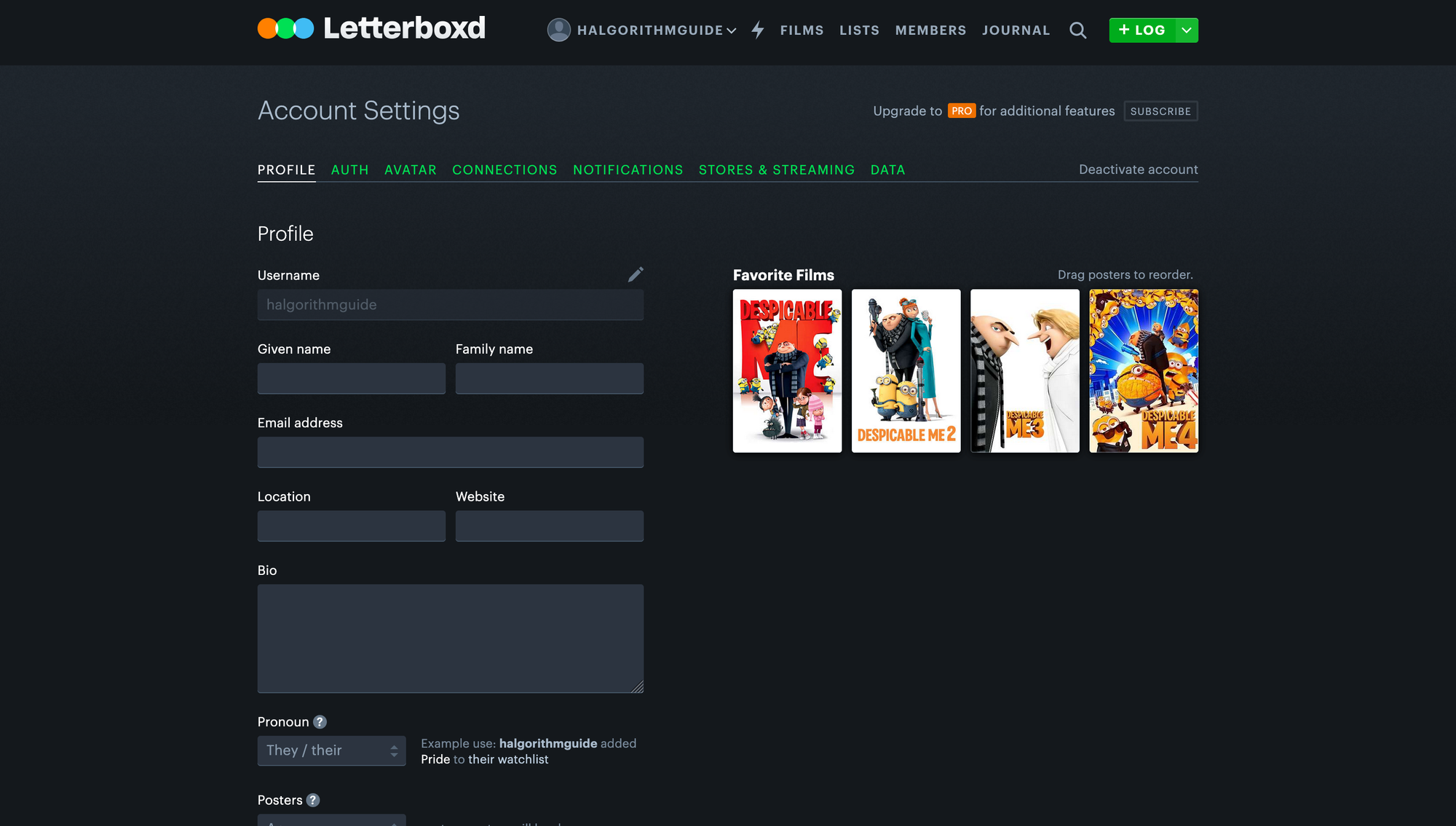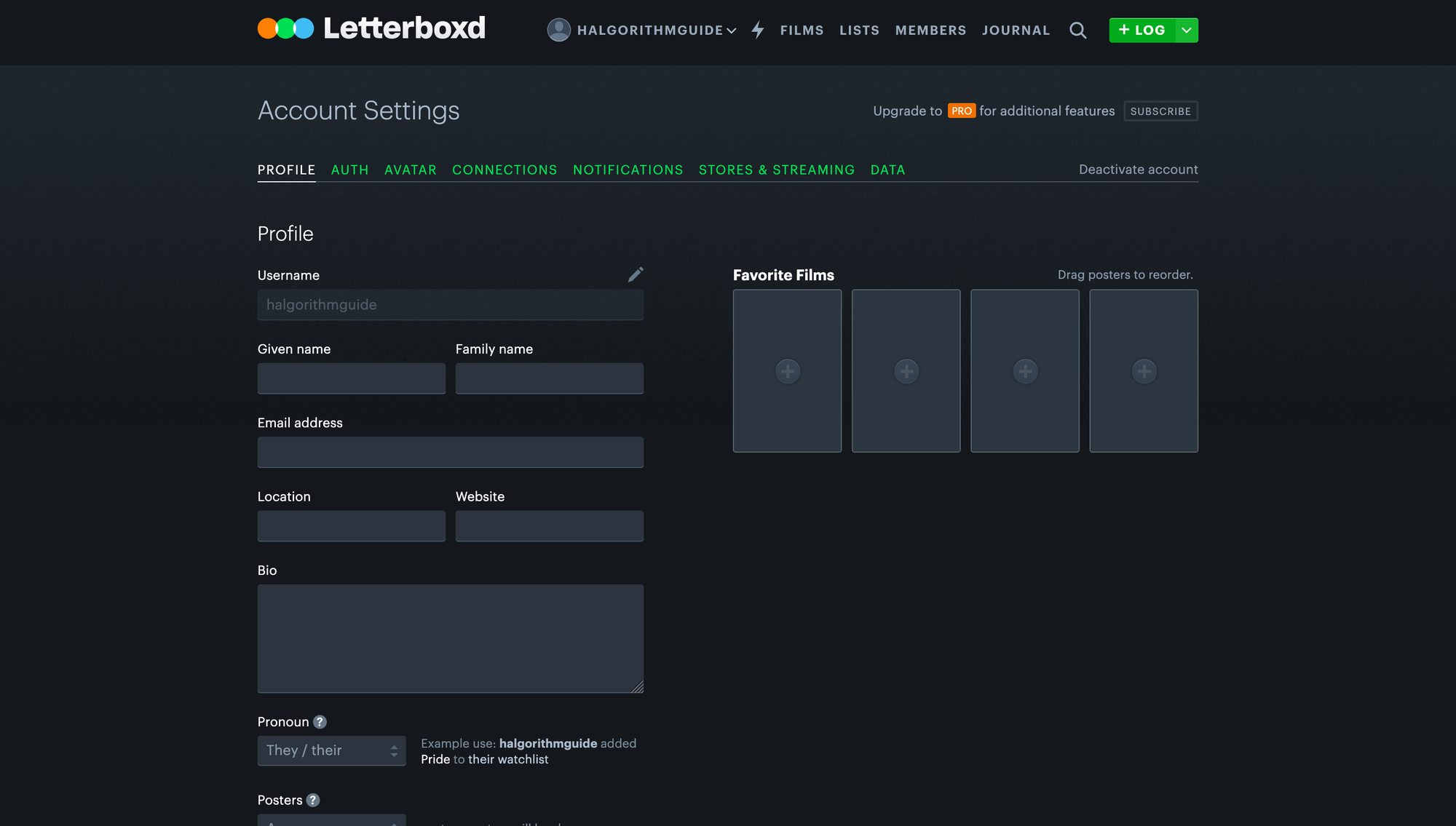 This is where you’ll fill out your bio, upload your photo, and choose your four favorite films.